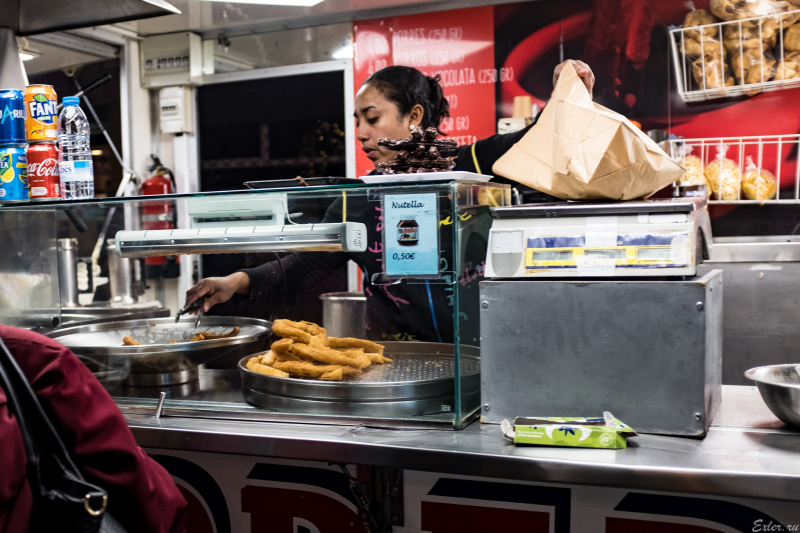 Обожаемые во всей Испании чуррос - сладкая выпечка в виде палочек: толстых и мягких или тонких и хрустящих. Их еще принято макать в расплавленный шоколад - страшно полезное блюдо получается под названием "Расти жопа, Новый год".