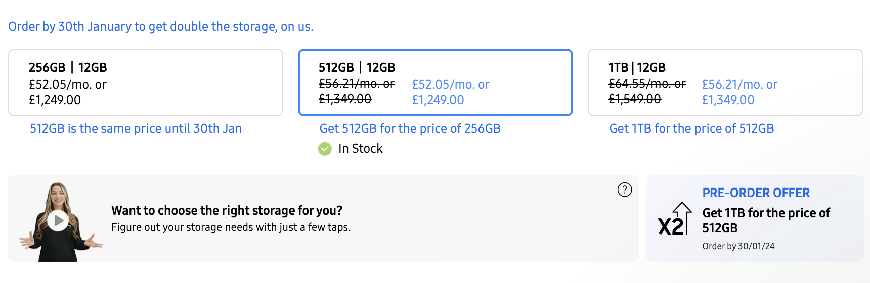 В Британии на официальном сайте вижу довольно привлекательные предложения в части объема флеш-памяти при предзаказе: