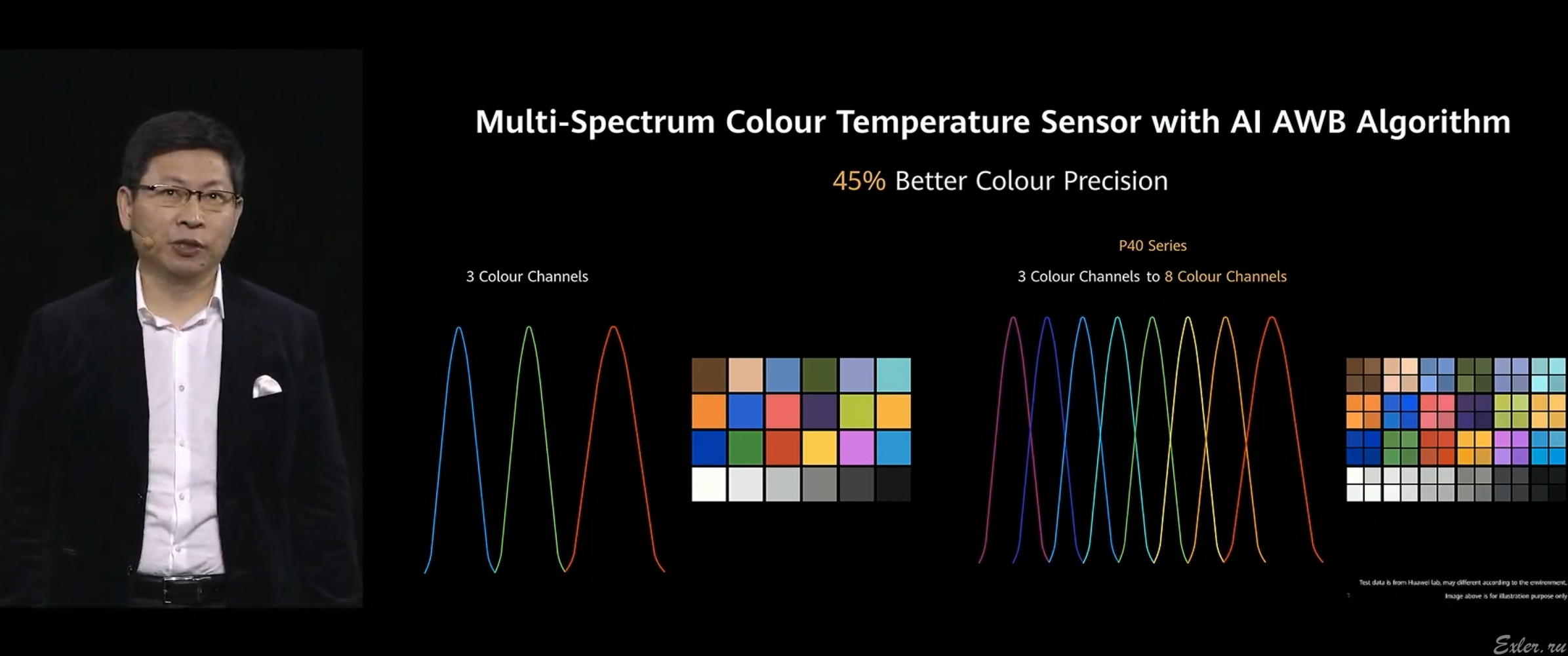 Мультиспектральный сенсор цветовой температуры и специальный алгоритм настройки баланса белого, который повышает точность цветопередачи на 45%.