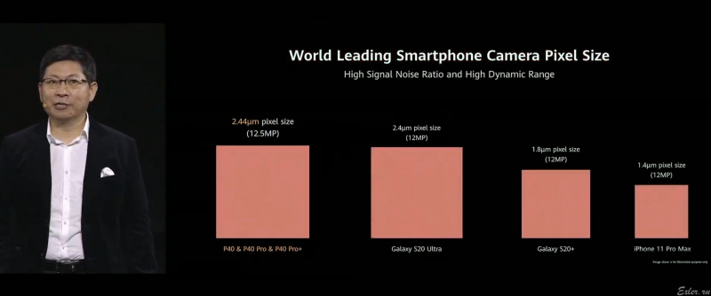 Соответственно, здесь самый крупный размер пиксела - это очень важно с точки зрения светочувствительности и рабочего ISO.