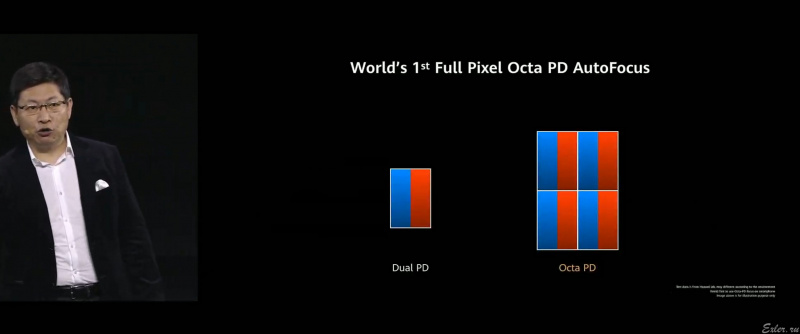 Камера снабжена высокоскоростной фазовой фокусировкой Octa PD AutoFocus. Утверждается, что она очень точно работает практически в любых условиях освещения