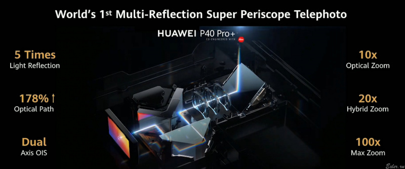 Схема этого уникального зума. Я все думал, как они вообще справятся с таким коротким рабочим отрезком... Придумали. Световой поток, попадая в смартфон, пять раз отражается от призм, что увеличивает его путь на 178%. Очень интересно, очень!