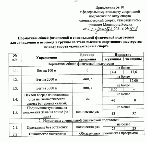 Министерство спорта РФ опубликовало приказ, утверждающий программу подготовки киберспортсменов.