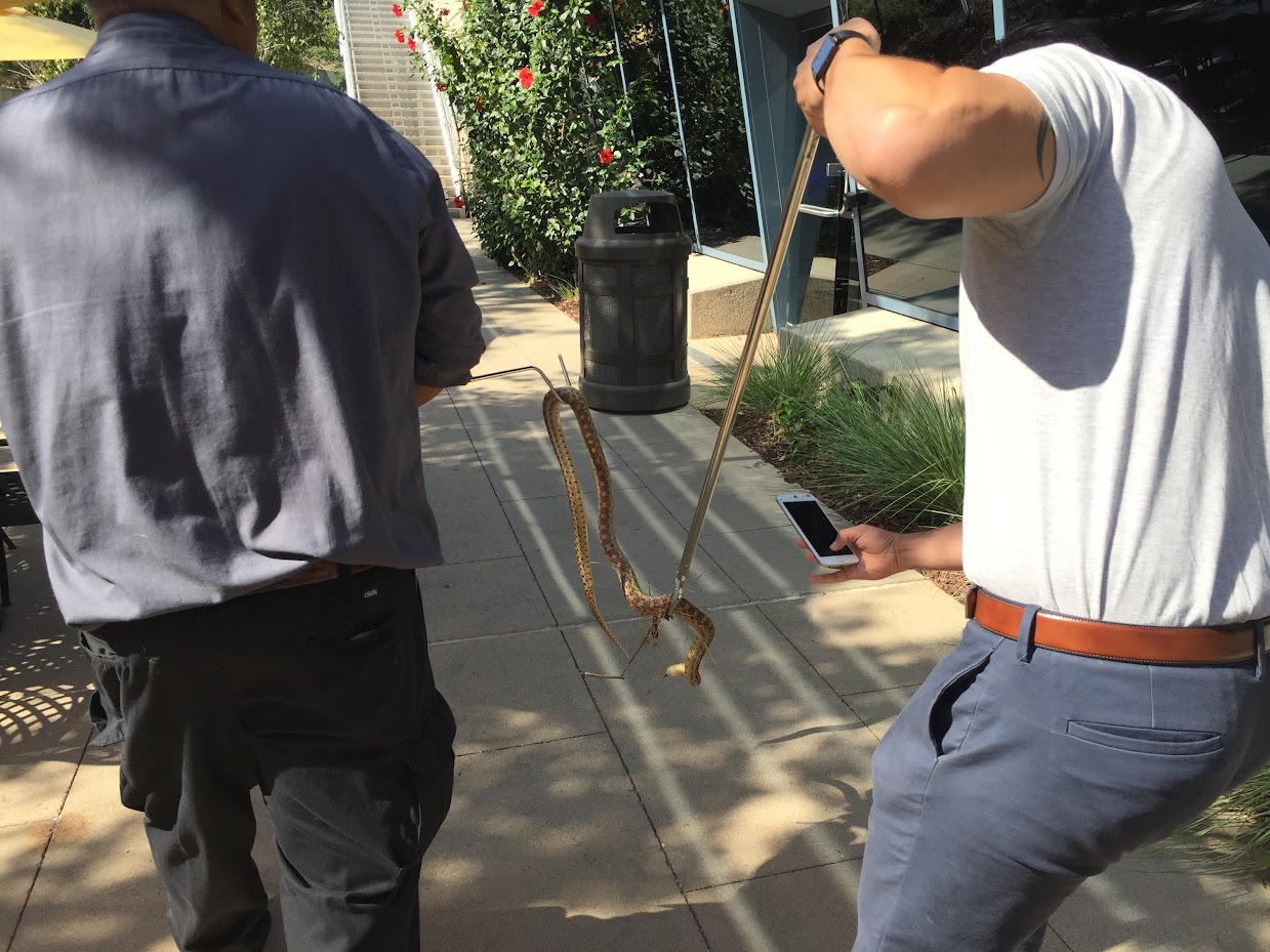 Когда бегал по кампусу Станфорда, там прям по дорожке ползали гремучие змеи (народ заранее предупреждал). Что обидно, сколько ходил в походы по калифорнийским горам, ни одной не увидел.