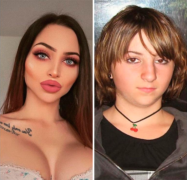 Посмотрел на фотку. Думаю: ну надо же, каких высот достигла пластическая медицина, если она из этого уродливого утенка слева сделала обычную симпатичную девчушку справа. Дочитав статью, с диким удивлением выяснил, что, оказывается, красавица - это которая слева. Вот ее инстаграм. Но нервным лучше не заходить, жесть аццкая.
