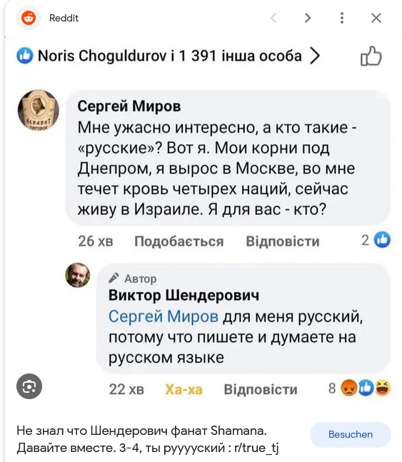 Но, понятно, эта "братскость народов" и набивание в родственники - это полный ппц, меня от этого дёргает не меньше, чем от "путинская война".