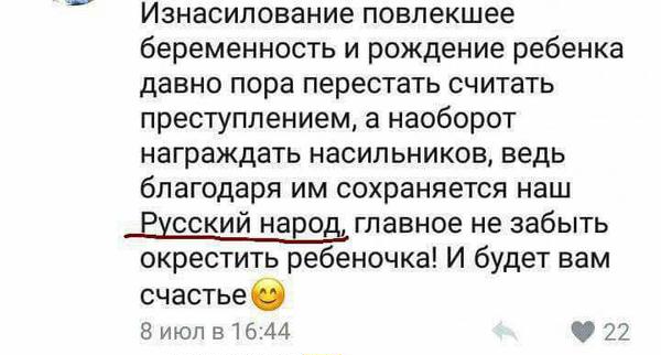 «Каждой даме от природы господь в большинстве случаев попустил родить множество деток. Если дама, исполняя заповедь божью „плодитесь и размножайтесь“, отказалась от искусственных средств прерывания беременности, то, очевидно, ребеночек у нее будет не один, а больше. А значит, ей не так больно и страшно будет, соответственно, с ним расставаться. Не так страшен черт, как его малюют. Бог не выдаст, свинья не съест», — заявил подмосковный поп.