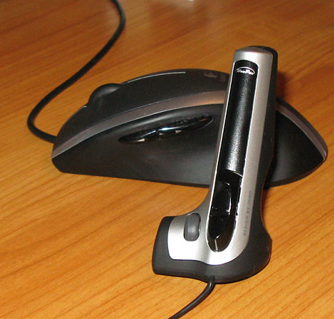 Вчера был в "Компьютерре" - дали поиграться забавное устройство под названием WOW-PEN Eco100. Это нечто вроде оптической мышки, но совершенно нового типа - она похожа на перо с кнопками. Вот она на фоне моей обычной мыши: