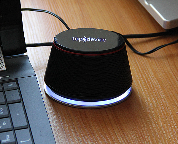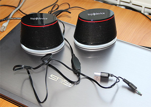 А мне тут как раз привезли несколько разных моделей колонок потестировать (у большого компьютера я тоже колонки хочу поменять, нынешним уже лет пять) и среди них был именно ноутбуковый вариант под названием TopDevice TDS-100.