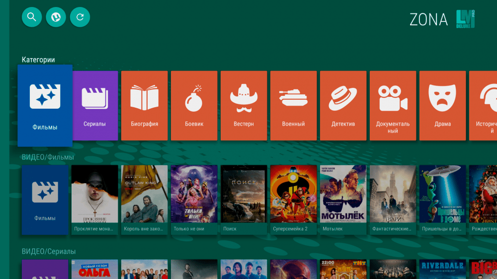 Пока там находила все фильмы/серии/мульты.