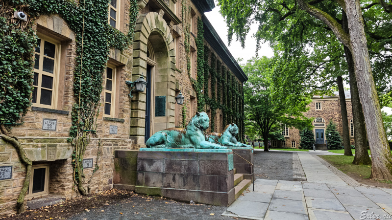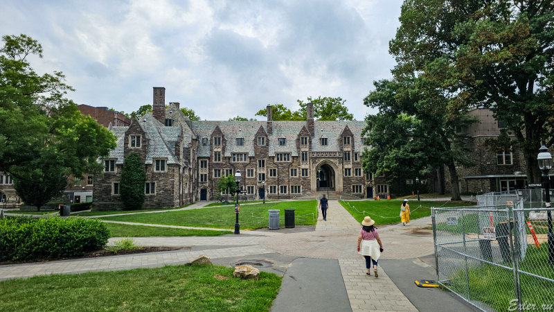 Ну и вот вход в кампус университета Принстона. Я вообще ожидал, что туда без палестинского флага или хотя бы без арафатки не пускают, но оказалось, что нет, пускают.