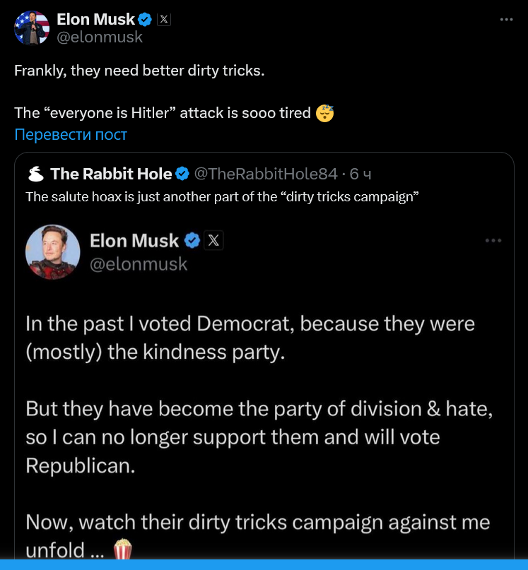 Маск посмеялся над идиотами: "Честно говоря, им нужны грязные приемы получше. Нападки типа "вы все Гитлеры" та-а-а-ак надоели"😴