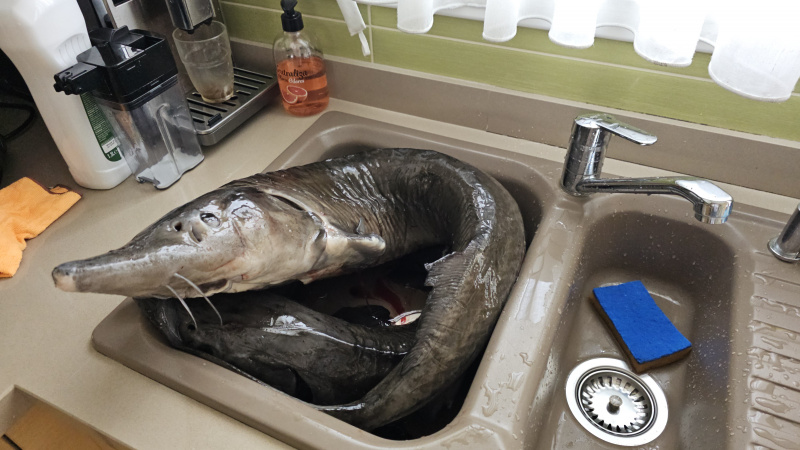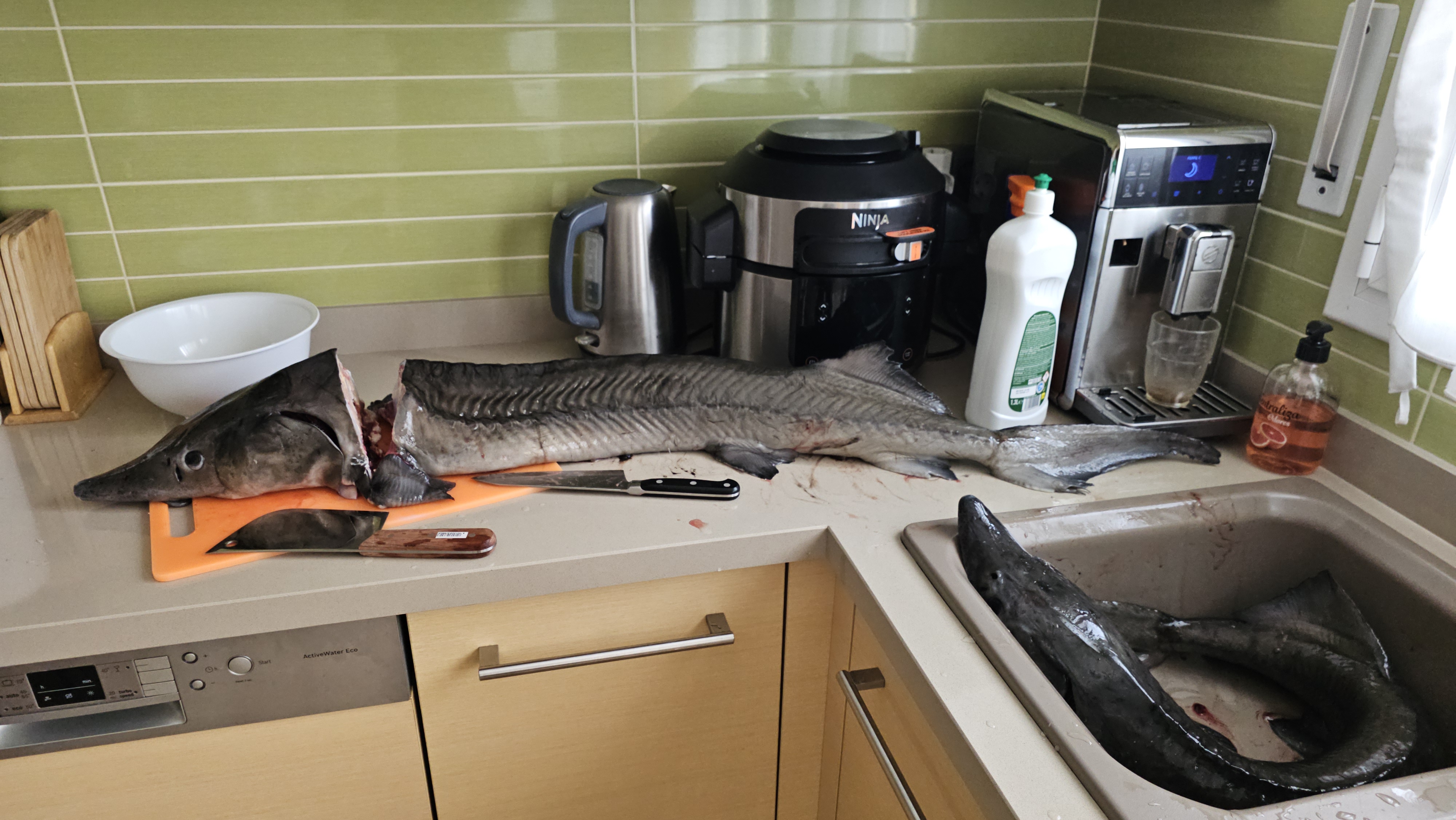 Там, конечно, небольшая проблема - эдакую тушу разделать, но я это делаю не первый раз, так что уже наловчился.