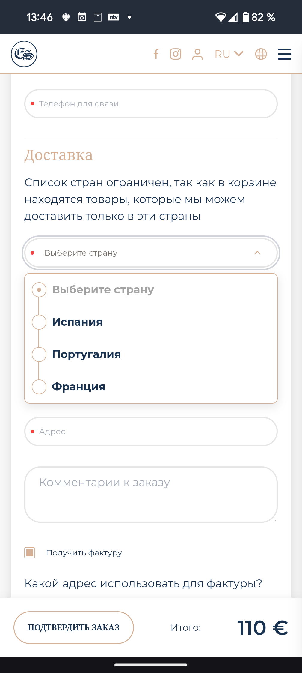 Остальные европейские страны — Скидка 50 € на доставку для заказов на сумму равную или превышающую 300 €.