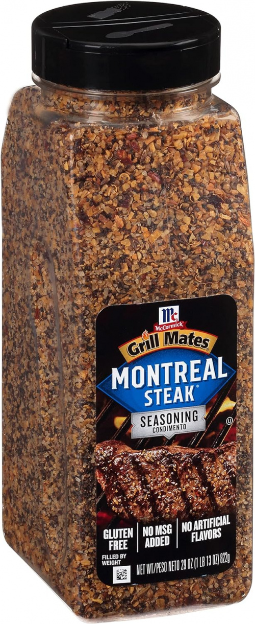 В итоге даже здоровенная банка почти в кило (29 oz - 882 грамма) разошлась, и я отправился заказывать новую - такую же. Кстати, у этого производителя есть приправа Montreal специально для курицы. Я посмотрел состав - я такую сам делал (соль, перец, карри, куркума, сладкий красный перец, также я добавляю сухой чеснок с петрушкой), но использую нечасто по сравнению данной приправой для стейков, которую я использую с курицей. Ну и в итоге просто заказал на Амазоне новую банку именно для стейков.