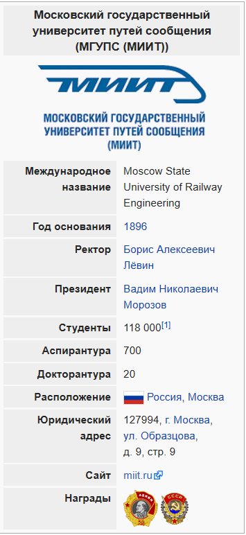Хм... И где там у них официальное название с упоминанием орденов? На сайте МИИТ не нашёл.