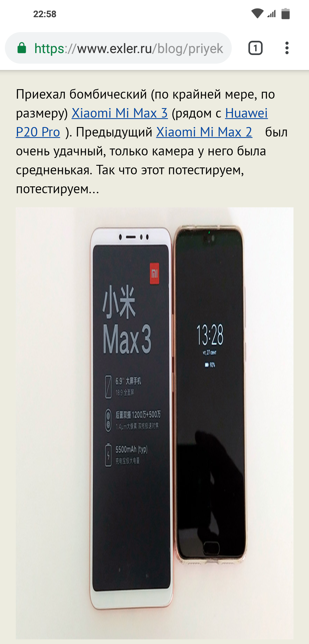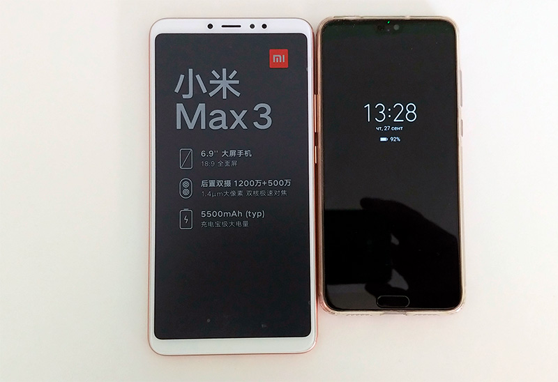 Приехал бомбический (по крайней мере, по размеру) Xiaomi Mi Max 3 (рядом с Huawei P20 Pro). Предыдущий Xiaomi Mi Max 2 был очень удачный, только камера у него была средненькая. Так что этот потестируем, потестируем...