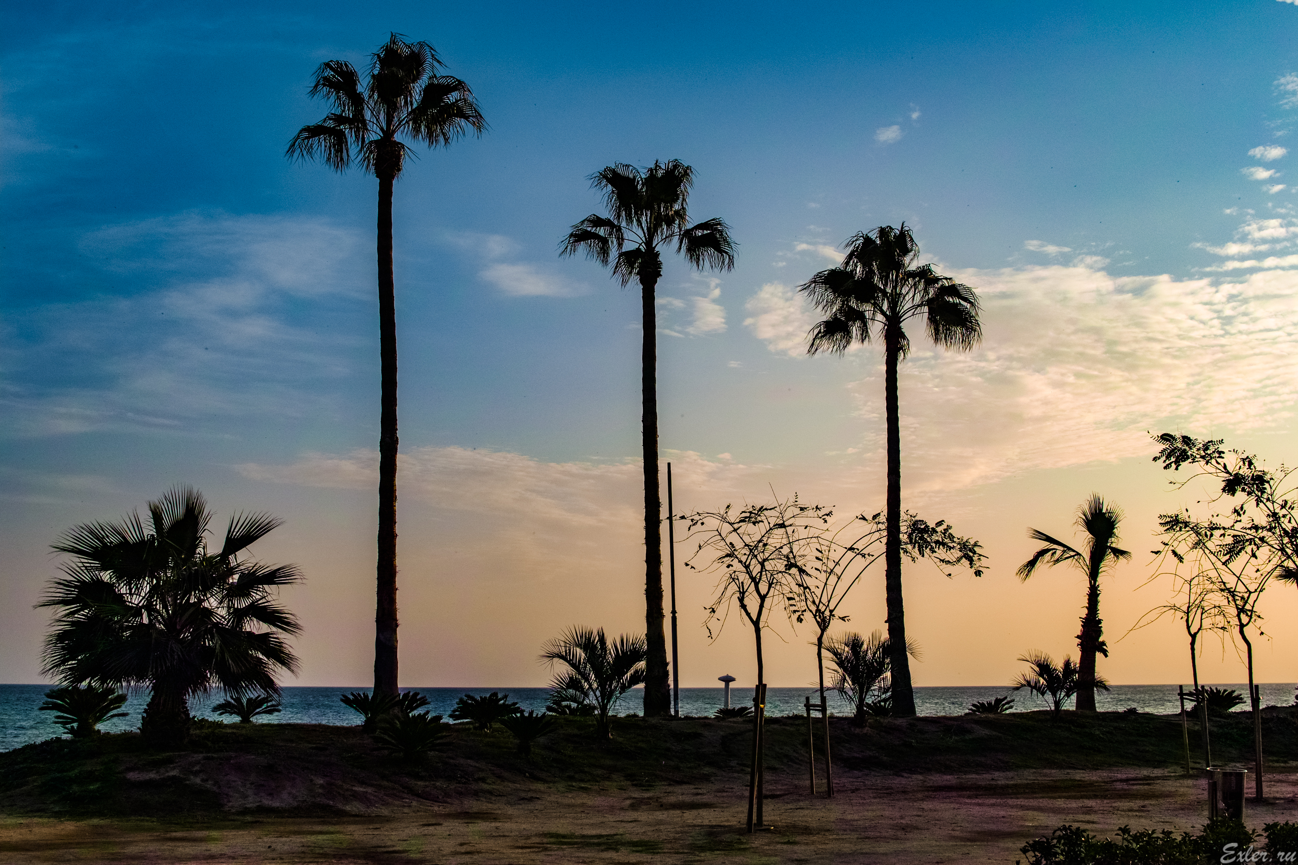 Почему? На вечерних фото, где три высоких пальмы и следующая с пальмами, отчетливо видны точки.