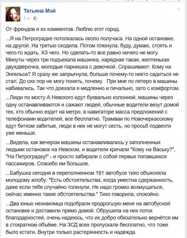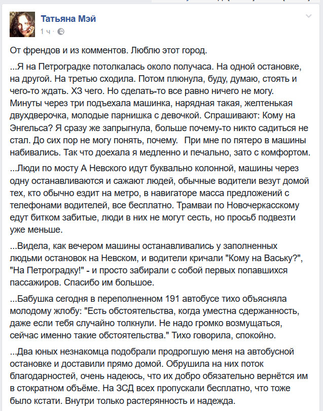 Вот это настоящее гражданское общество. К слову минимум две таксокомпании людей бесплатно возили. А уж простые автомобилисты - массово