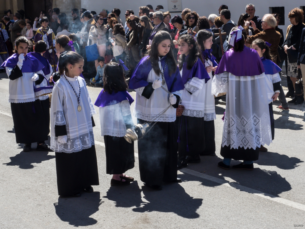 А это, как я понял, мэр города с женой. У женщин традиционный наряд для этих процесиий - черное платье с кружевами, черные туфли и обязательно мантилья - накидка на голове. В обычной жизни мантилью не носят, надевают только для Святой недели.