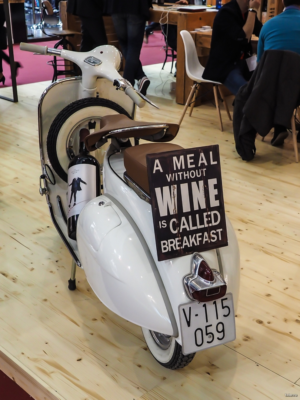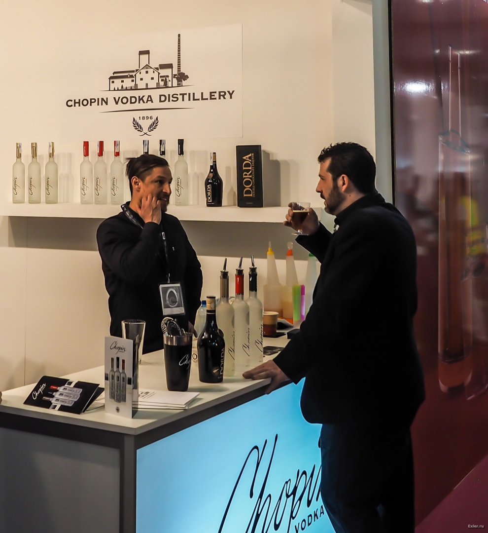 Кстати, на выставке кроме вина изредка попадались и другие напитки. Вот, например, неожиданно по пути попалась водка, которую русские туристы ласково называют "Чопин" или "Жопин". На самом деле, конечно, это Шопэн, но название "Жопин" для водки подходит больше, Шопэна как-то жалко. С другой стороны, почему нет? Выпил водки, сел за рояльку - и пиздякаешь себе потихоньку по клавишам какую-нибудь, прости господи, мазурку Фредерико Николяевича!