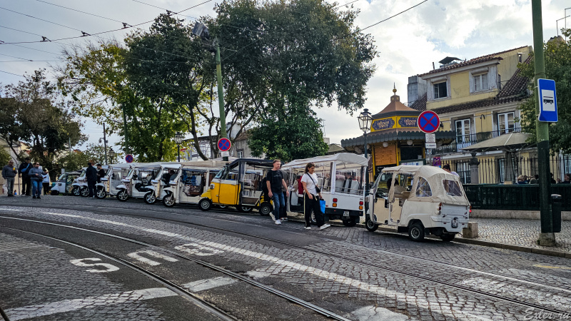Как рассказывал нам наш гид, тук-туки раздражают, например, местных жителей и нормальных таксистов. Тем, что ездят и паркуются игнорируя все правила. Кроме того, у них обычно нет никаких лицензий на перевозку пассажиров, никаких норм безопасности и т.п. Вроде, в последнее время с ними начали как-то бороться. В Синтре, например, их стало заметно меньше, чем пару лет назад.