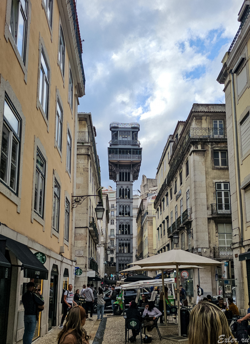 Местная достопримечательность - Elevador de Santa Justa. Построен в 1902 году для соединения нижних улиц с площадью Карму. Наверху есть обзорная площадка с видом на город. Чтобы подняться на лифте, нужно отстоять немаленькую очередь и заплатить по 6 евро с носа. Через Интернет билеты брать нельзя, только на месте и только наличкой - на поддержание лифта. Мы не стали стоять в очереди.
