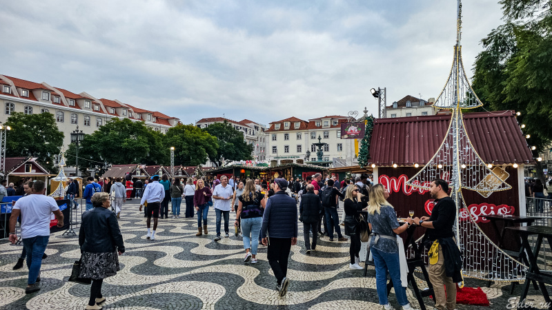 На Praça do Rossio - рождественская ярмарка. Глинтвейн, сладости, бижутерия, сувениры и все такое прочее.