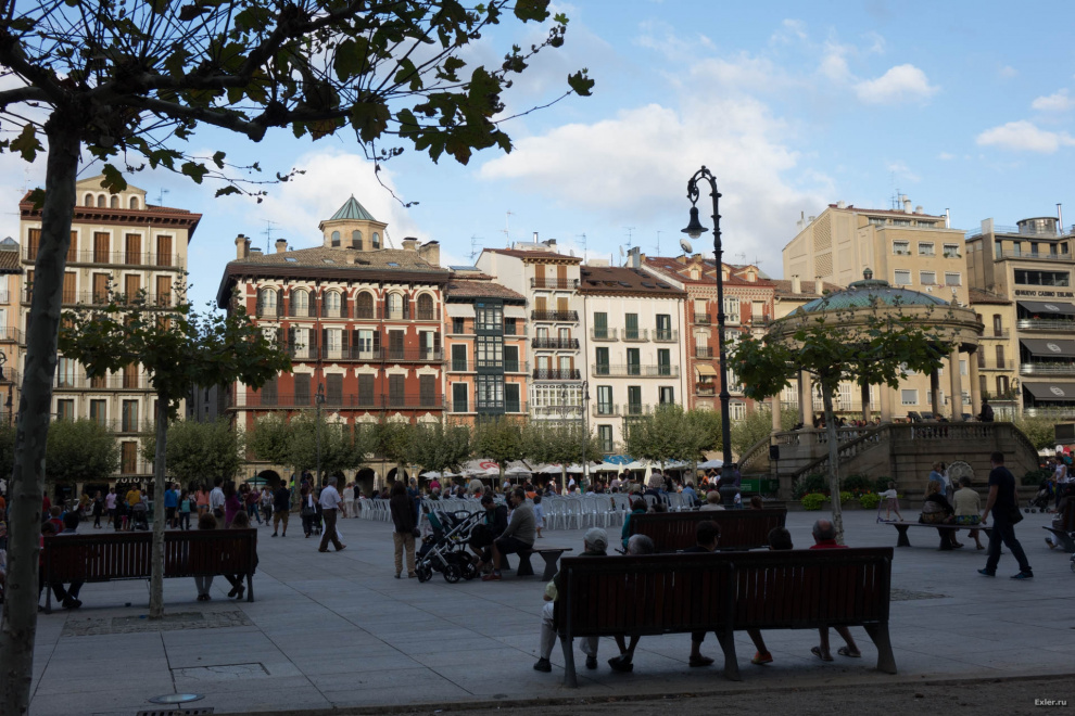 Приехали в старую часть города. Это главная площадь - Plaza de Castillo. Местные любят сюда приходить и сидеть в какой-то из кафешек, которые окружают площадь.