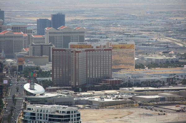 "Остров сокровищ", "Мираж", "Дворец Цезаря" и кусочек "Белладжио" с высоты.