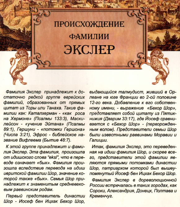 Ну, собсвтенно, без всех этих наверняка поддятнутых за уши изысканий-исследований было и так ясно, что фамилия Экслер - еврейская фамилия. Ровно как и Гантмахер, Рейзер, Гольшлегер и т.д. Все они так же одинаково созвучны с комбинацией из 3-х букв Шор, о чём тут пишется. Тоесть - никак не созвучны.
