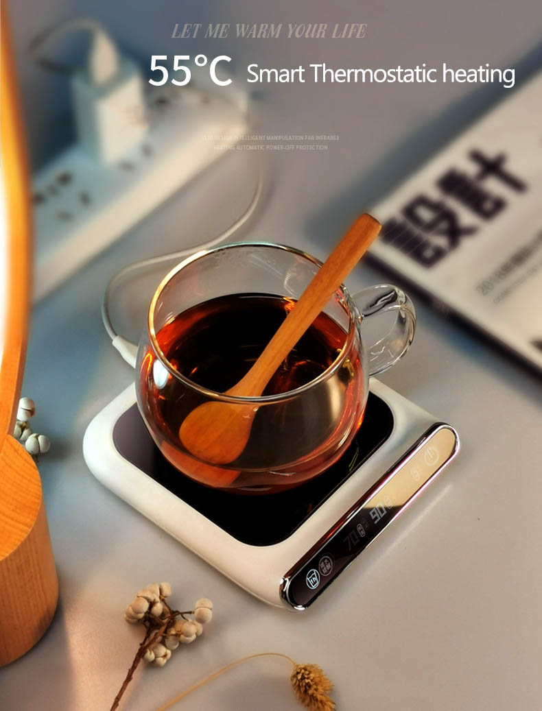 Рекомендую обратить внимание на такой нвгреватель чашек. Работает от Usb. Есть режим поддержания температуры и три режима нагрева. Также есть функция напоминания о напитке. Подходит как для стеклянных и керамических чашек, так и для тетрапаков и пластиковых бутылок, подходящих для подогрева. Лучше нагревает закрытую тару. Управление сенсорное, разобраться просто. 11.11 будет скидка 15%.