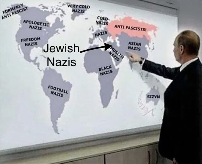 Но, по утверждению российской пропаганды, в Украине имеет место быть украино-еврейский нацизм, направленный исключительно против русских, - такая себе боевая русофобия.