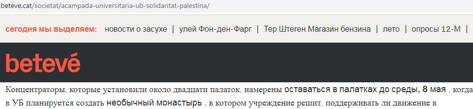 В Испании в студенческих кампусах тоже активизировались все эти "акции в поддержку Палестины". Всё по полной программе "от реки до моря" и прочее дерьмо.
