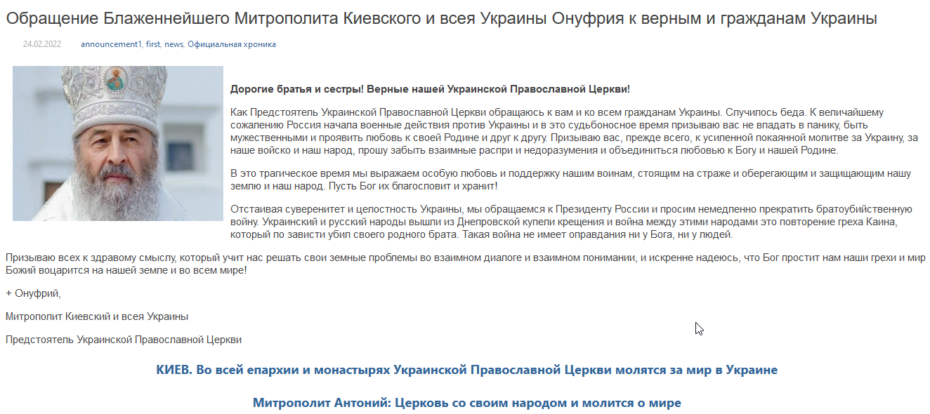 В первый же день Митрополит Киевский и всея Украины Онуфрий назвал все своими именами