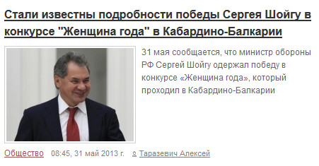 Заголовок конечно идиотский, но Шойгу всего-то получил победу в номинации "женская симпатия" . Нравиться он кабардино-балкарским женщинам короче говоря.