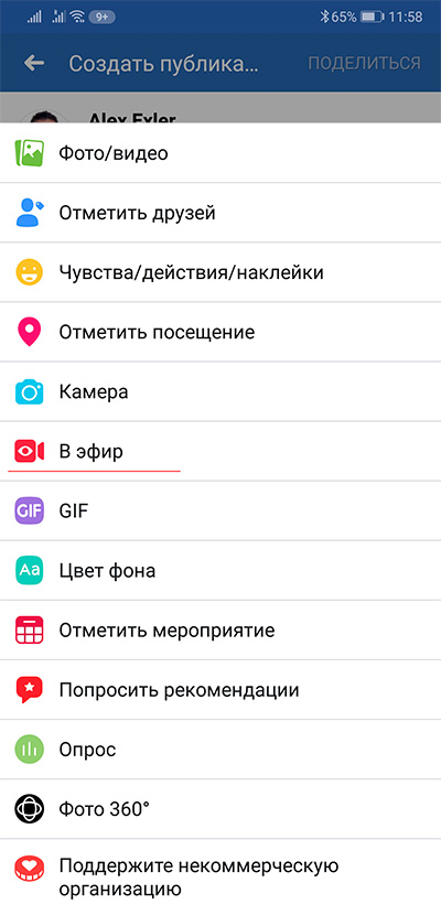 В Facebook некоторое время назад появилась такая штука, как "прямой эфир". Если его запустить, то Facebook с камеры смартфона начнет записывать видеоролик (или аудиоролик), который будет транслироваться для ваших подписчиков с тем видом доступа, который вы указали. По умолчанию включен доступ "Для всех". О ведении вами прямой трансляции в FB для подписчиков сообщается в отдельном окошке, штука эта довольно заметная.