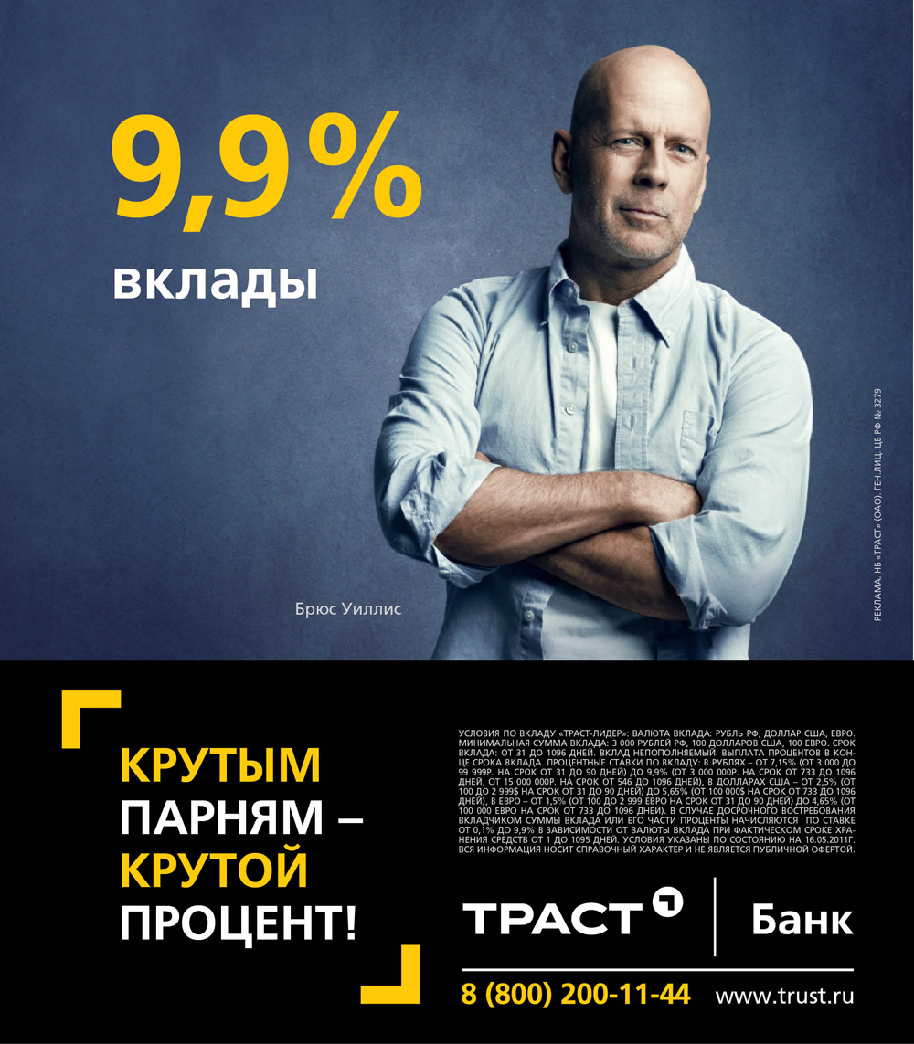 Брюс в Барнауле рекламирует какой-то местный банк. Полно билбордов. Надеюсь, Брюс об этом знает.