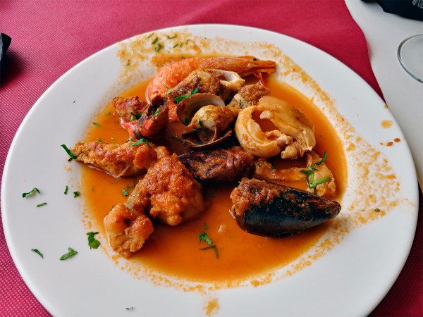 В этот раз среди первого горячего была паэлья, а ее мы заказываем без вариантов - там ее делают отлично (впрочем, в этих краях паэлью мало где делают плохо). А на второе на выбор была свинина или кролик с гарниром, а также zarzuela de mariscos. То есть сарсуэла из морепродуктов. А что такое, извините, сарсуэла, спросили мы у словаря? Это оперетта, ответил словарь, музыкальная комедия.