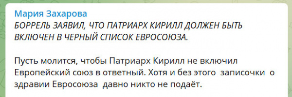 А чего бы Патриарху не предать анафеме всех этих Боррелей и Байденов? Вот ужо им будет!