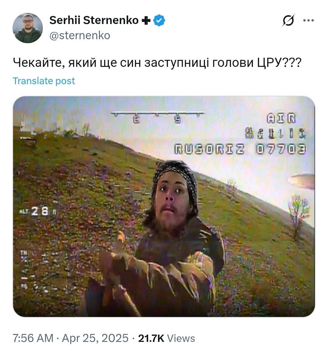 Причём завалили этого дурачка дроном от Сергея Стерненко, так что чей-то донат получился весьма ярким. Есть даже скриншот последнего мгновения с камеры fpv.