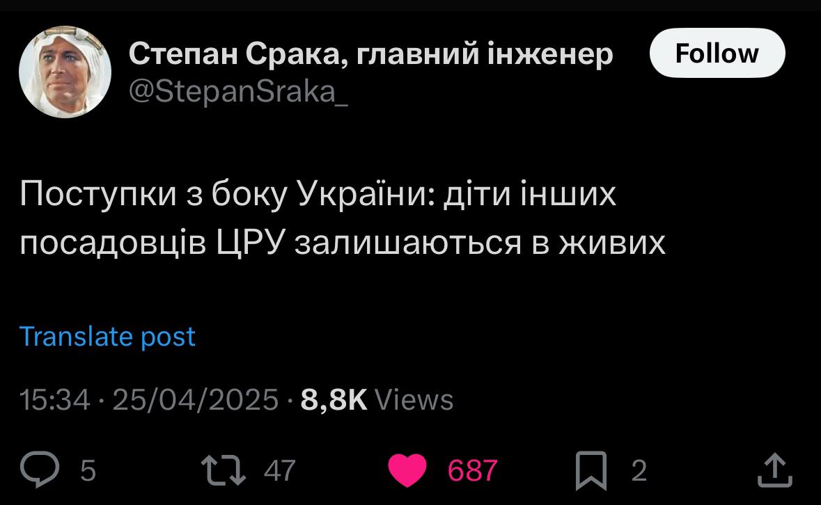 В издании "Важные истории" рассказывают о жизненном пути некоего Майкла Глосса, сына замдиректора ЦРУ, который выходил на протесты в защиту климата, потом стал странником-хиппи и уехал в путешествие по миру, требовал остановить войну в Украине, вступил в антивоенное хиппи-движение Rainbow family, ездил в лагерь экоактивистов, потом взял имя Хамза, стал горячим фрипалестайнером, заговорил об идеях "многополярного мира", заявлял о необходимости войны против "гегемонии Запада", после этого отправился в РФ, там воспылал страстной любовью к СССР, Ленину, Сталину и Путину, а потом завербовался по контракту (он писал своим друзьям, что пошел в армию, чтобы получить российский паспорт) и отправился убивать украинцев. Где его и ухлопали. Был этому светлому юноше со взором горящим 21 год.