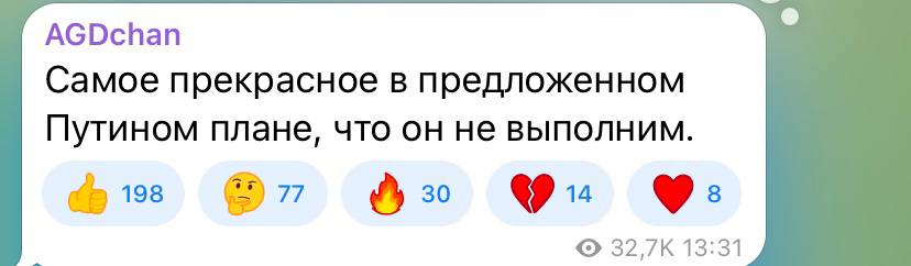 "Мирные предложения" от России ни к миру, ни к переговорам никакого отношения не имеют. Это ультиматум на заведомо неприемлемых условиях.