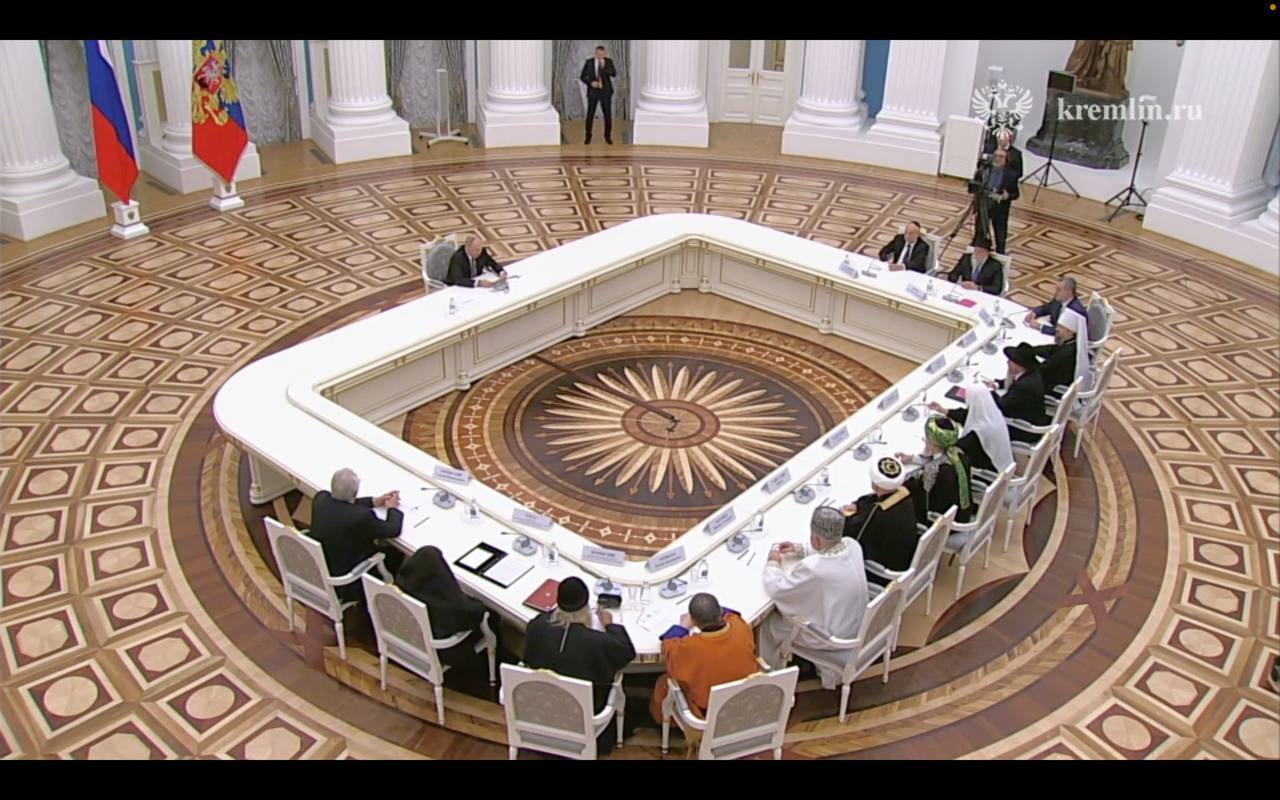 У ЛадимЛадимыча новый стол. Впервые опробован на встрече с религиозными деятелями.