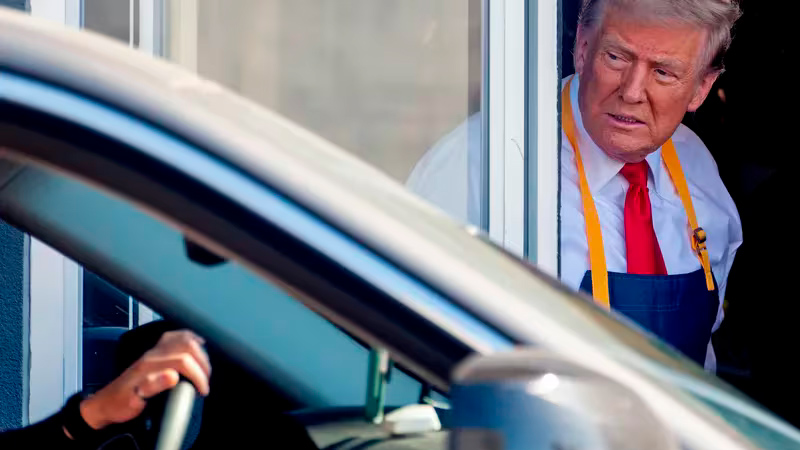 Бывший президент США Дональд Трамп работает в «Макдоналдсе» в Фестервилле 20 октября 2024 года (Том Грэлиш)