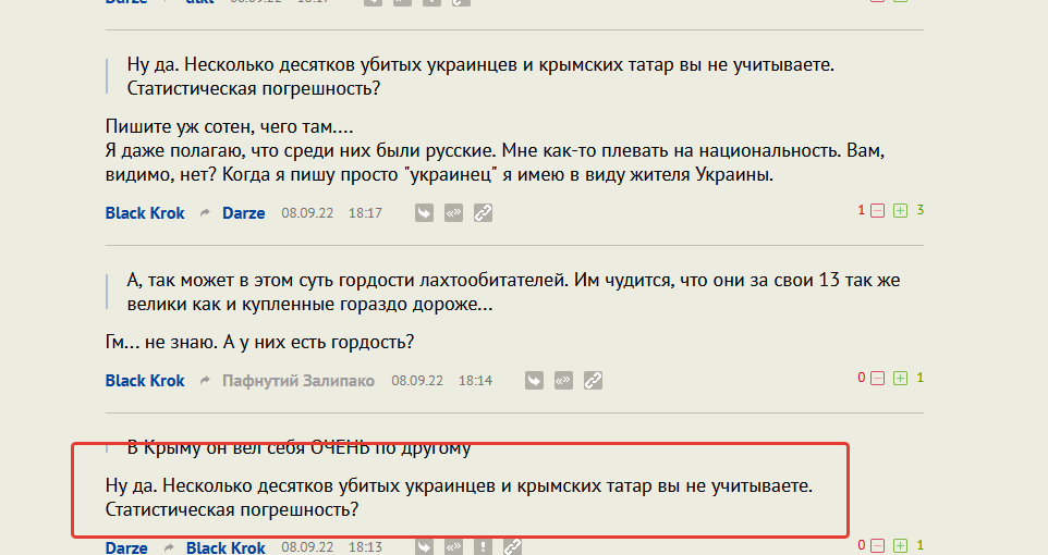 Но вот прорашистского я даже подозрений не увидел с прошлого февраля. Он не ферштеерит ни в слове (как веник). Очень четкую позицию занял с краю, "это образование, претендующее на государственность, но им не являющееся, надо уничтожить под корень" (нет, не про Украину ваще. Смешно, кстати, как в итоге все пропагандонские обзывалки стали идеально подходить к самой параше. "страна 404").