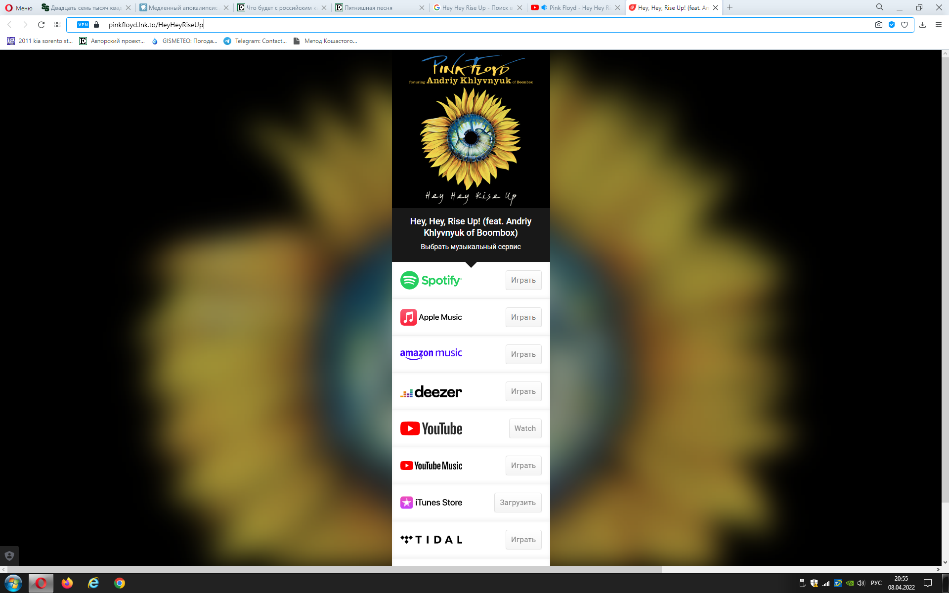Британская группа Pink Floyd выпустила песню «Hey Hey Rise Up», все средства от продажи которой пойдут на гуманитарную помощь для Украины.