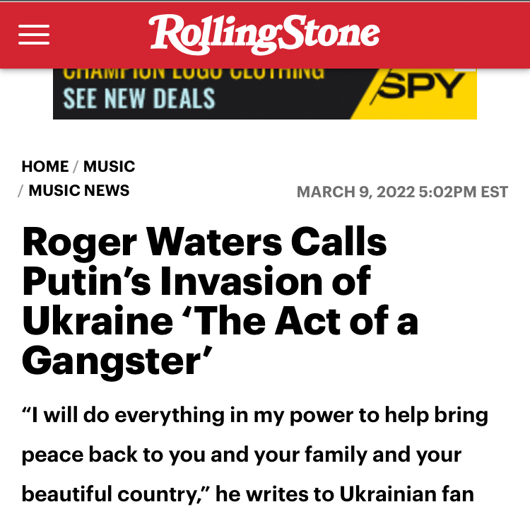 особенно на фоне этого мудака Уотерса, который сейчас ноет про то как Запад вместо того чтобы поставлять оружие Украине, лучше бы решал вопросы с Путиным дипломатическим путём.
