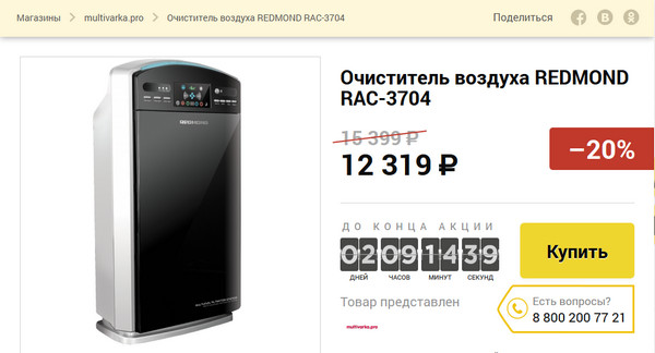 Upd: А теперь с помощью вебархива смотрим, сколько раньше этот воздухоочиститель стоил на сайте той же Мультиварки. Фокус-покус.