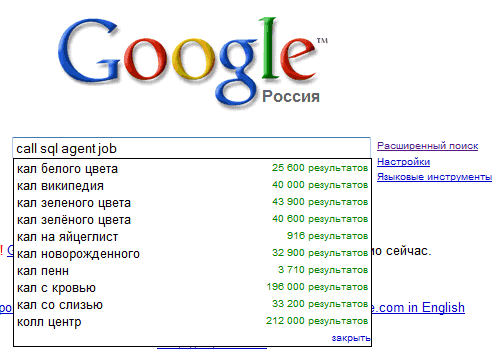 Абсолютно реальная выдача, я проверил. Начинает срабатывать со строки "call sql a". Чем Google так досадил "call sql" - непонятно.